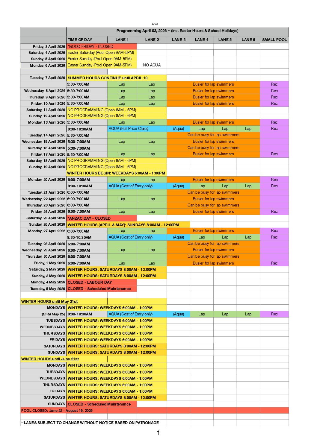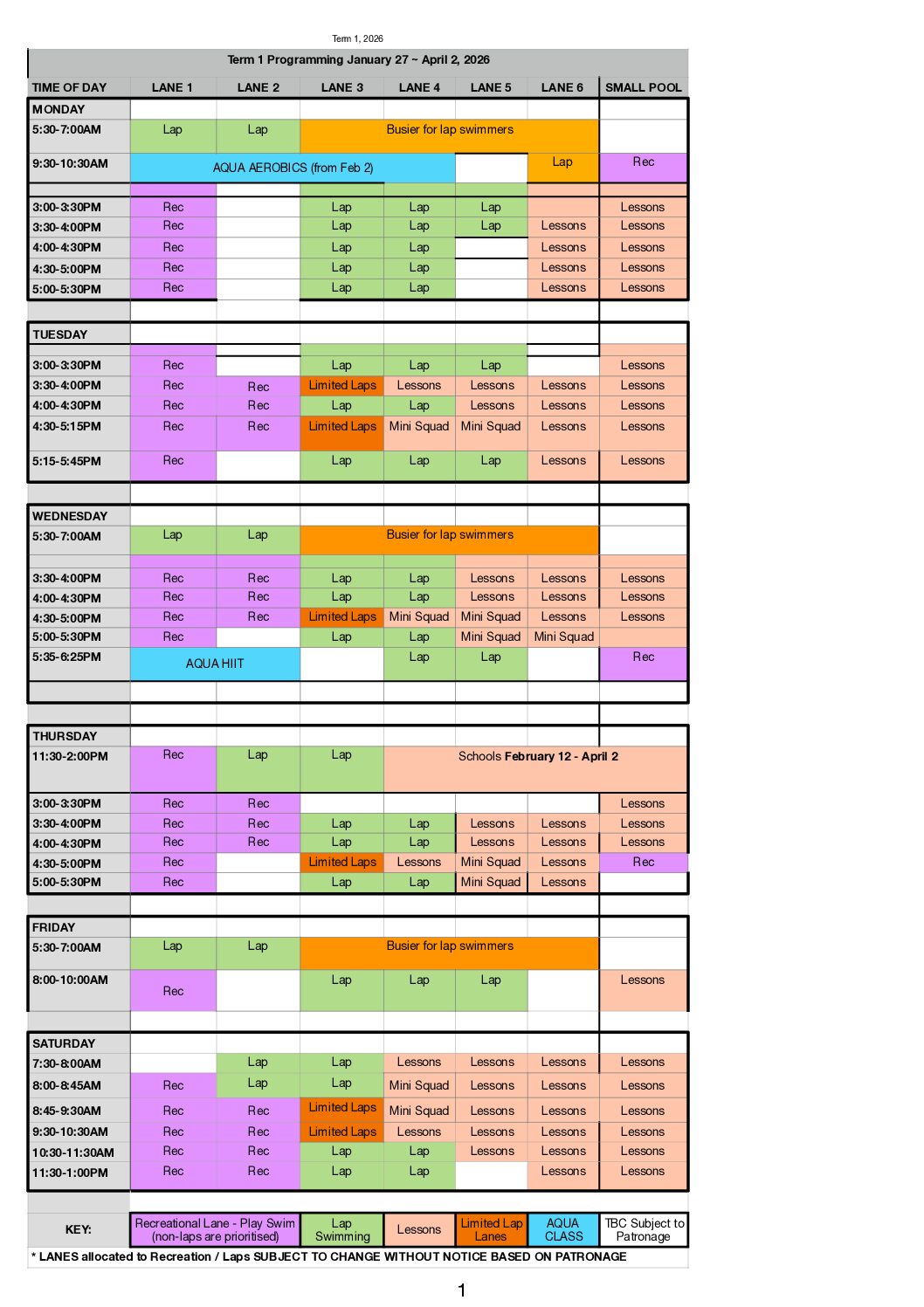 Term 1 2026 Lane Programming